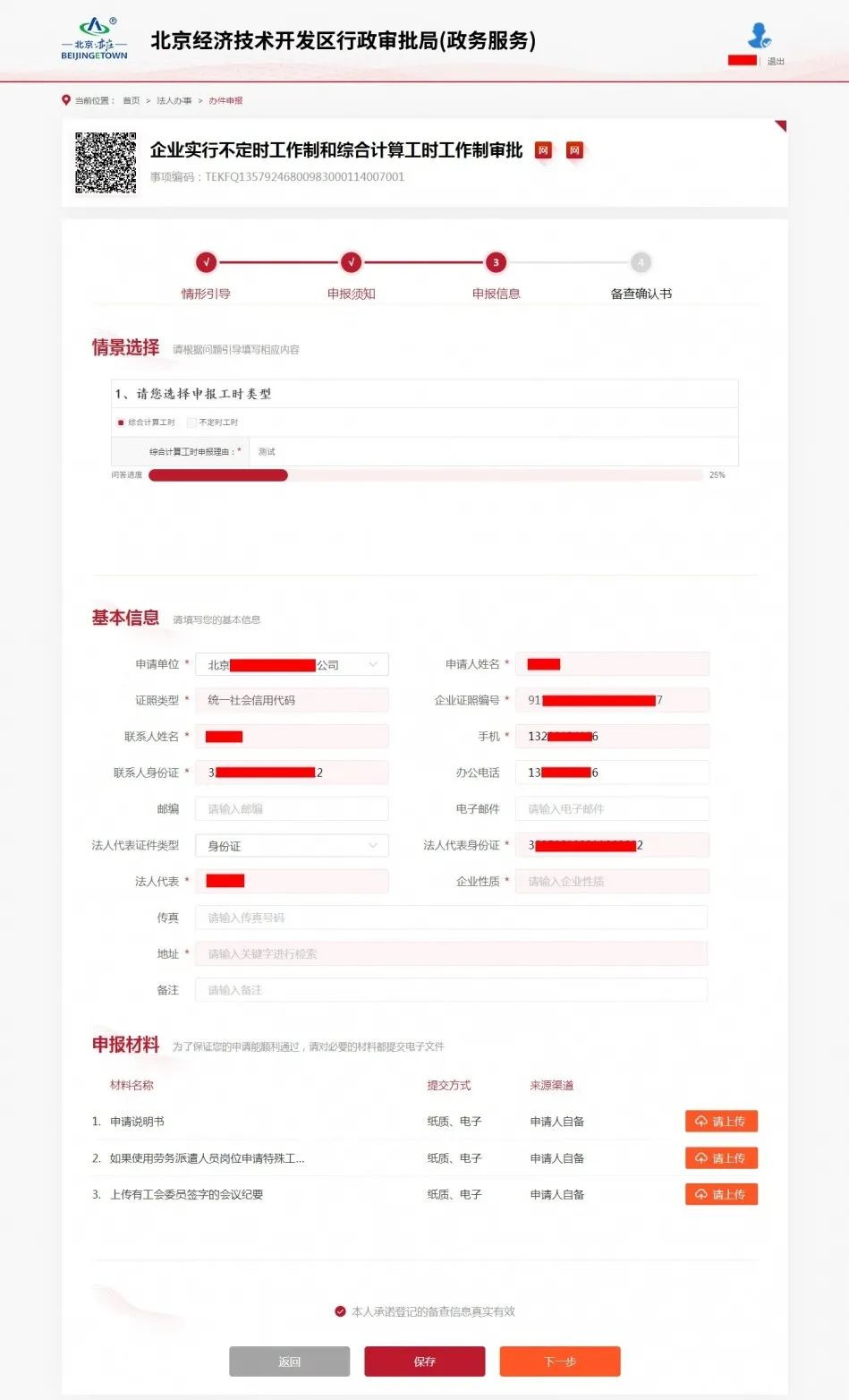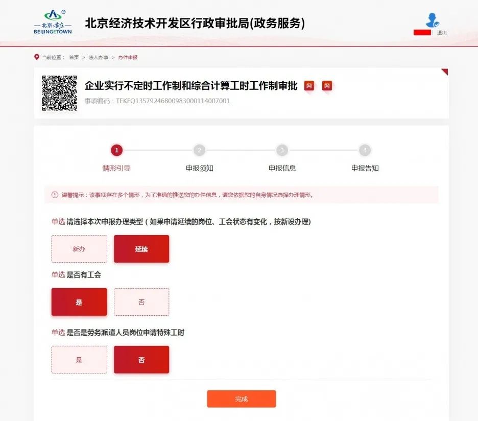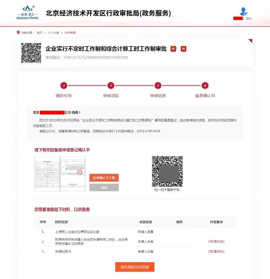 由于工作性质的特殊性,北京云时代部分岗位每人全年的实际工作时间为1947个小时,且实行白夜班轮班制。为了能让企业及时顺利开展工作,企业向行政审批局网上提交不定时工作制和综合计算工时工作制备查手续,即可立即收到《备查申请登记确认书》,获得相关经营资格,无需等待审批部门做出同意的决定。